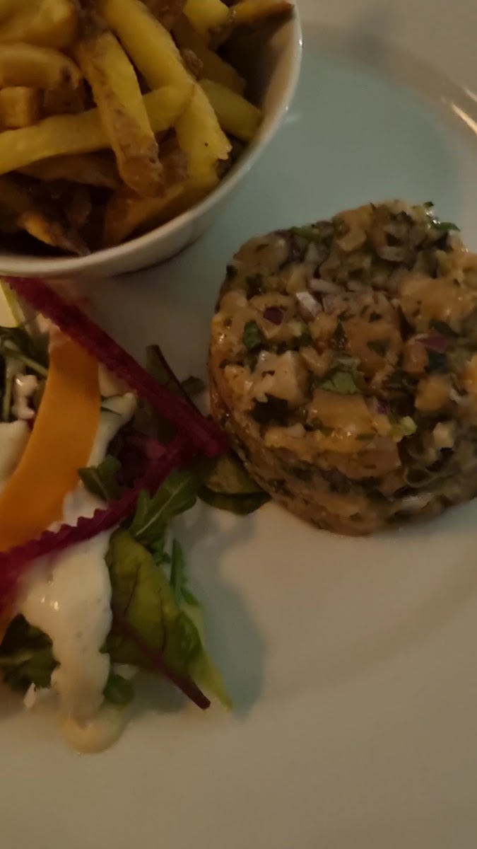 Enjoyable evening in a beautiful garden setting. The food was fresh and tasty. The service was terrific. I had the squid stuffed with beef. Really good! The side salad was more than a side. The whole of Hyéres has a nice vibe in the evening. We truly enjoyed ourselves.